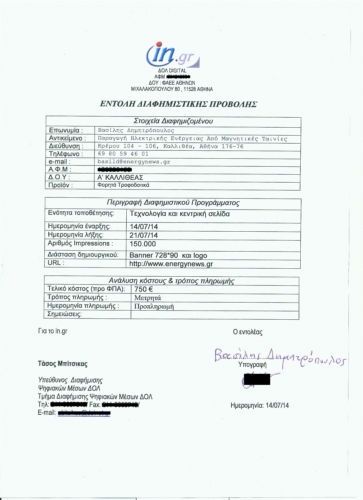 Τελειώνοντας, να κάνω μία ΕΥΓΕΝΙΚΗ καταγγελία σχετικά με τον πρώην Δημοσιογραφικό Οργανισμό Λαμπράκη. Αγόρασα ένα πακέτο διαφημιστικής προβολής στο in.gr, το 2014 – δείτε τη σχετική σύμβαση και το αντίστοιχο banner. Ο Υπεύθυνος Διαφήμισης μου είπε ότι ο ΔΟΛ δεν υποστηρίζει δημιουργία πολιτικών κομμάτων!!! μέσω διαφημίσεων!!! και μου επέστρεψε τα χρήματα που είχα προπληρώσει. Εάν ζούσε ο αείμνηστος Χρήστος Λαμπράκης, με τόσους Αντι-Δικτατορικούς Αγώνες και όχι μόνον, τι θα έλεγε για αυτό το θέμα; Και ύστερα οι εφημερίδες του εν λόγω Οργανισμού ανέκαθεν μιλούσαν για Ανάπτυξη, Καινοτομία και νέες θέσεις εργασίας. Τα Εκατομμύρια των Θέσεων Εργασίας από την εφαρμογή του Τετράωρου Ωραρίου Εργασίας ΔΕΝ τα βλέπουν άραγε;;; Δεν αντιλαμβάνονται ότι είναι τέτοια η Φύση της Καινοτομίας των φορητών τροφοδοτικών ώστε για να προχωρήσει, απαιτείται ΔΗΜΟΣΙΟΤΗΤΑ - ΠΟΛΙΤΙΚΗ ΕΝΤΟΛΗ;;;