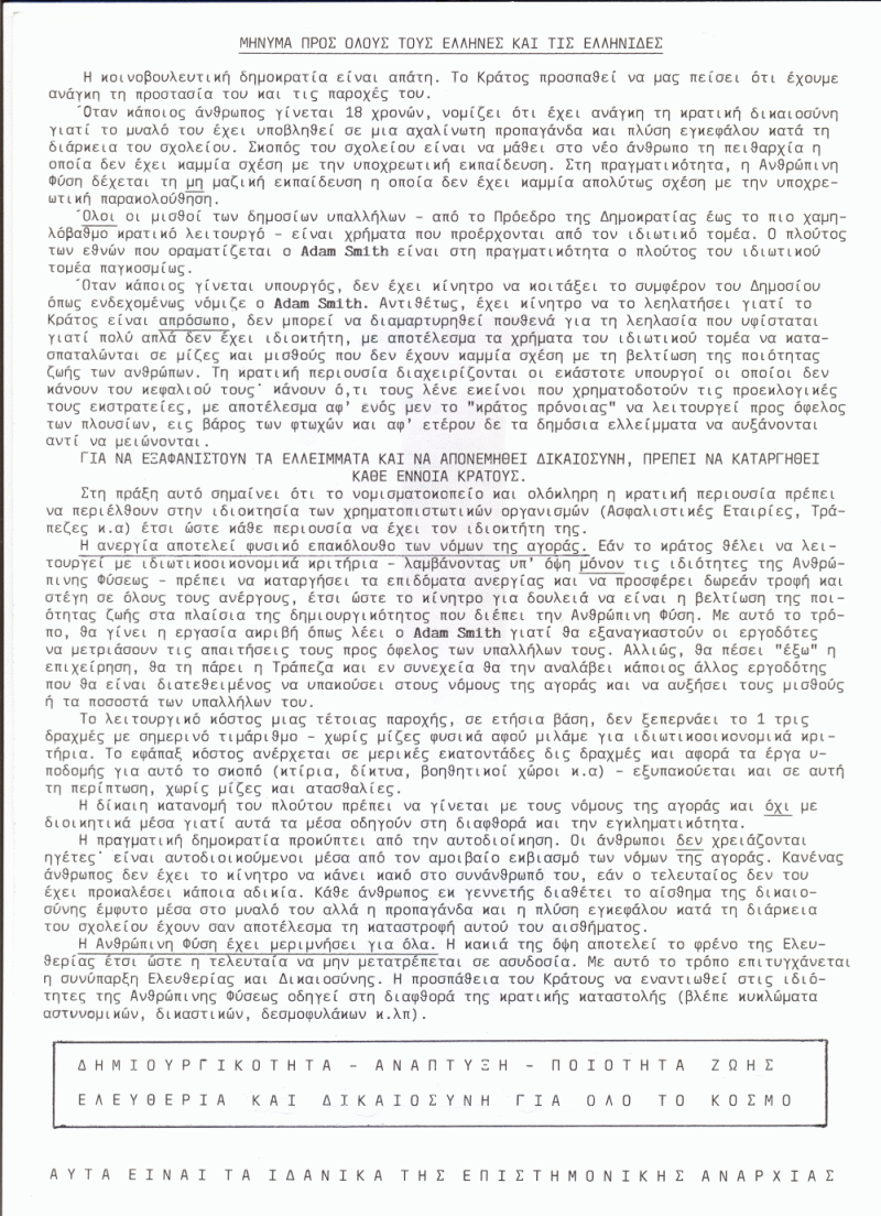 Ανακεφαλαιώνοντας, μπορούμε να πούμε ότι οι παραπάνω Ιδεολογικές Θέσεις κινούνται μεταξύ Αντιεξουσίας και Καπιταλισμού. Κατά συνέπεια, ανήκουν στον Χώρο του Κέντρου (ούτε Δεξιά ούτε Αριστερά). Είναι σαφές ότι τα χρήματα για την παραπάνω Κοινωνική Πολιτική θα προέλθουν από την συρρίκνωση του δημοσίου τομέα, καθιστώντας έτσι την επίτευξη των όρων των Βρυξελλών ΧΩΡΙΣ καταπίεση του Πληθυσμού. Η είσοδος των φορητών τροφοδοτικών στην αγορά αποτρέπει Συνεχείς Πιέσεις της Ευρωπαϊκής Επιτροπής προς την Χώρα μας σχετικά με τα δημοσιονομικά ελλείμματα.